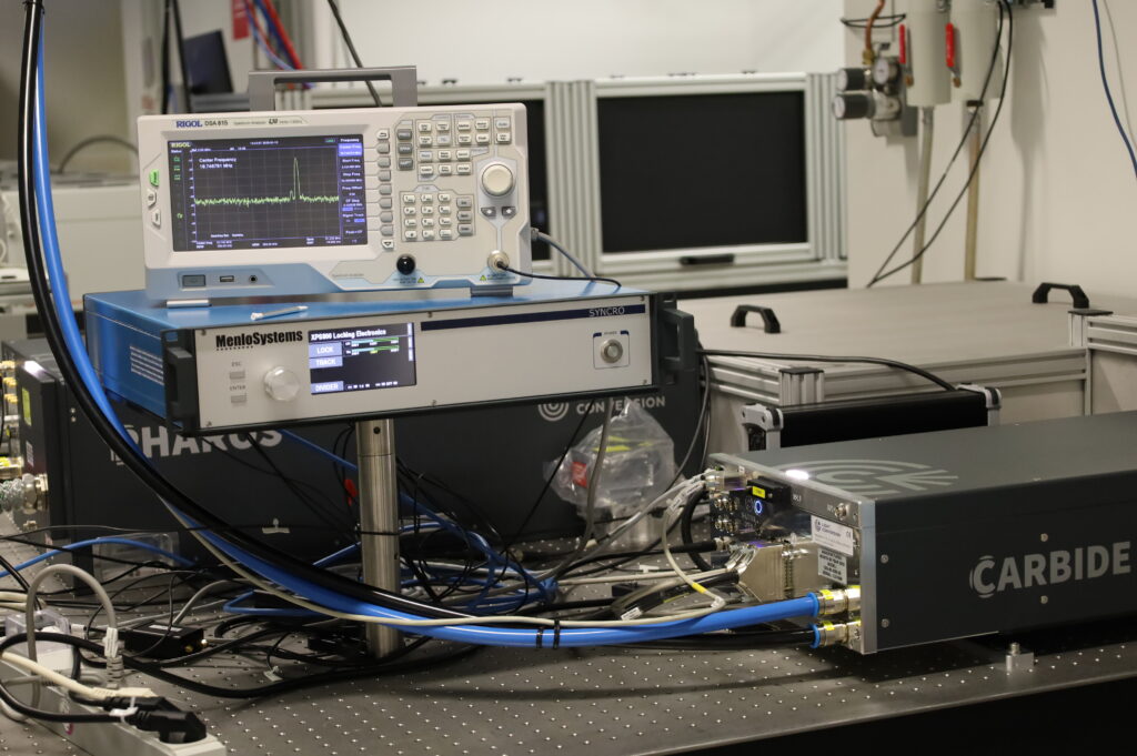La plateforme Nanolight du LIDYL est basée sur un laser à fibre Ytterbium avec un taux de répétition de 100 kHz, pompant un système OPCPA (FASTLITE STARZZ), elle délivre quatre lignes de faisceaux femtosecondes :