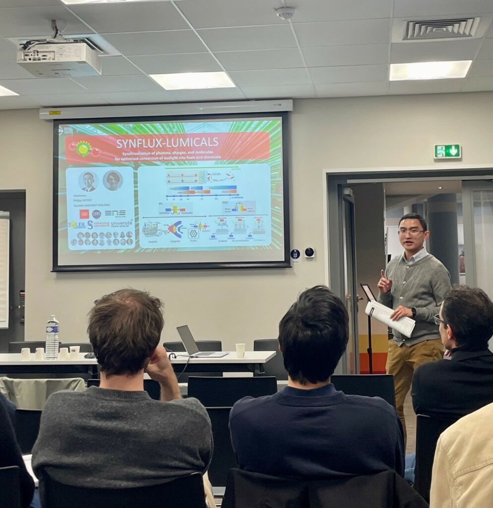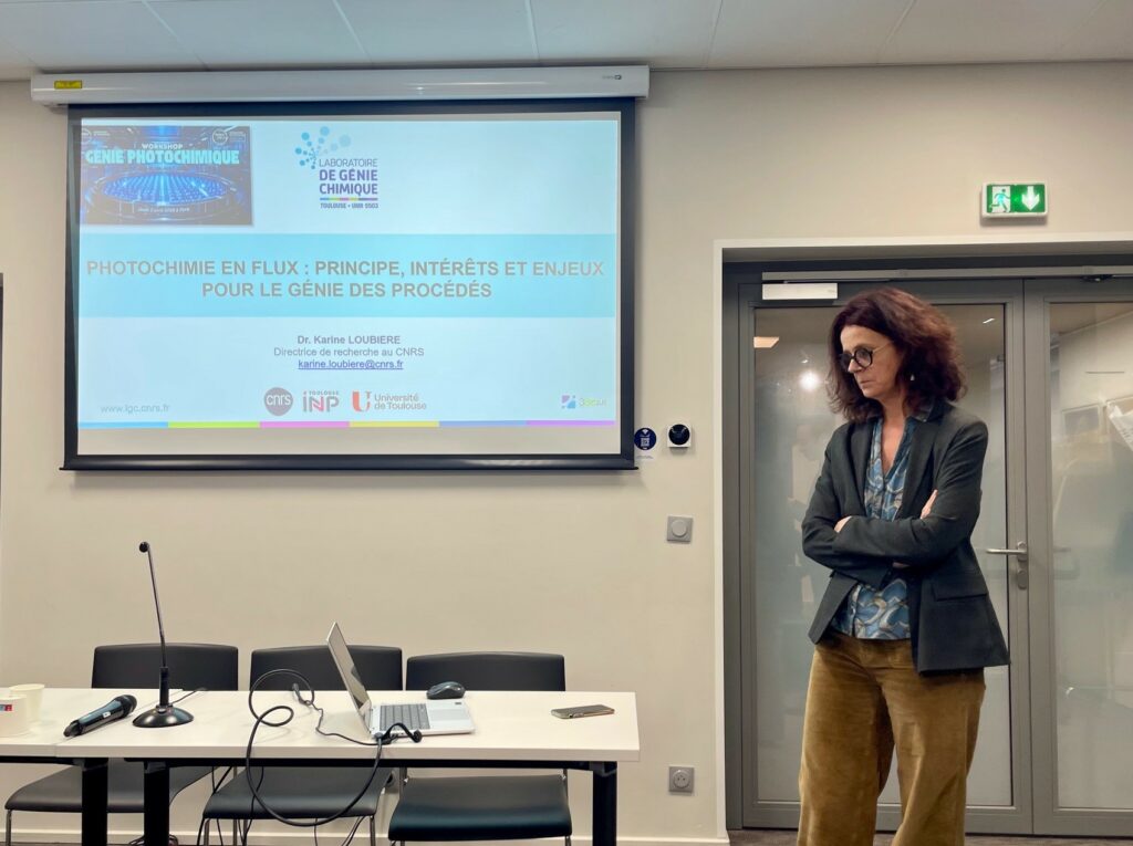 Cette journée a permis de croiser les expertises de six intervenants autour des leviers d’optimisation des procédés photochimiques, depuis le piégeage de la lumière solaire en photovoltaïque jusqu’au génie des photoréacteurs, en passant par la photochimie en flux et la photoélectrocatalyse. Les présentations ont illustré la diversité des approches développées dans les projets ECOCHEM, Power CO₂ et SYNFLUX-LUMICALS.