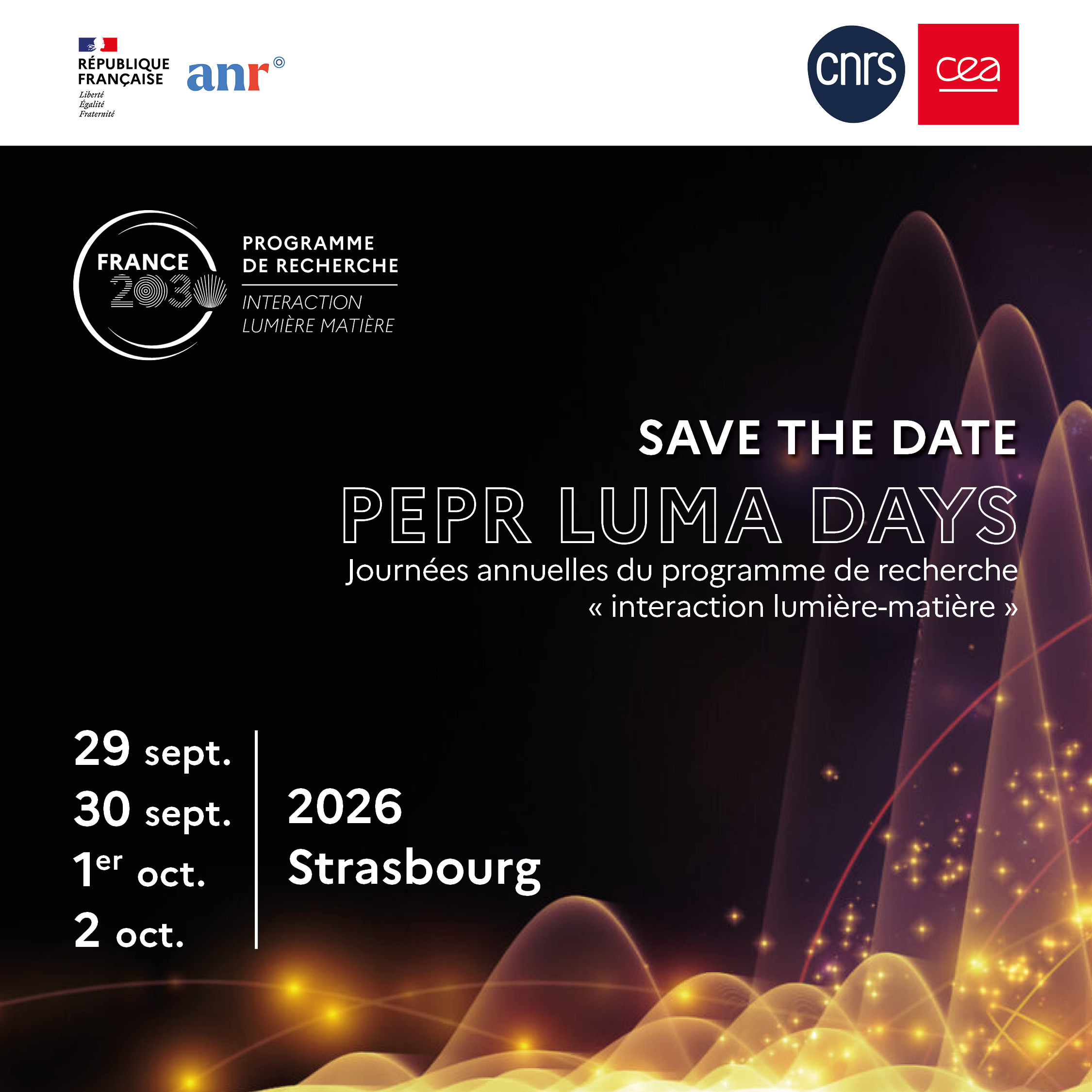 Le PEPR LUMA a le plaisir de vous inviter à ses prochaines Journées annuelles. Dédiées à la revue de projets, les 29 après-midi et 30 septembre seront réservées aux équipes financées par le PEPR. Les 1er et 2 (matin) octobre seront des journées scientifiques ouvertes à tous. Elles permettront de mettre en lumière les résultats de la communauté. Une session spécifique sera consacrées aux liens entre laboratoires et industrie.